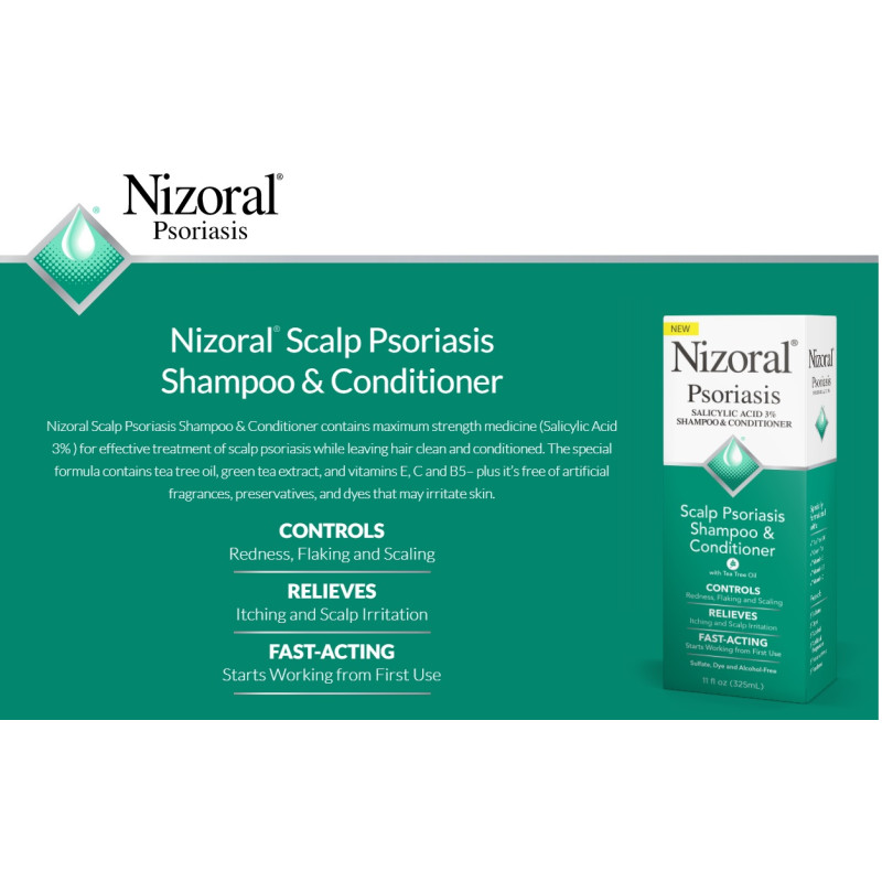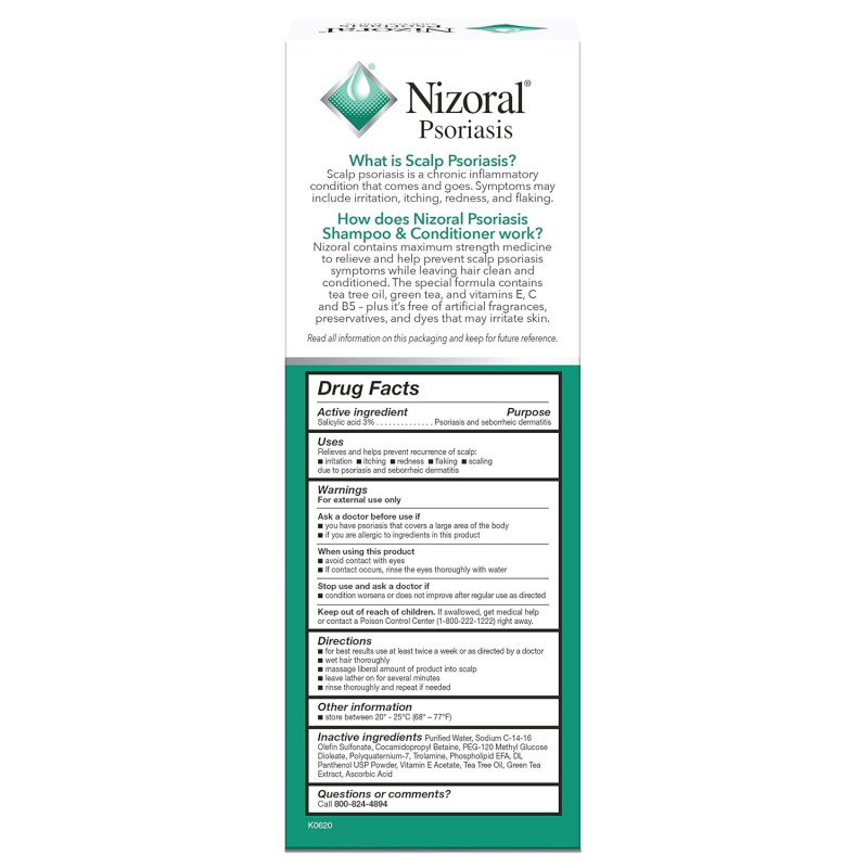 Nizoral Scalp Psoriasis Shampoo & Conditioner contains maximum strength medicine (Salicylic Acid 3% ) for effective treatment of scalp psoriasis symptoms while leaving hair clean and conditioned.