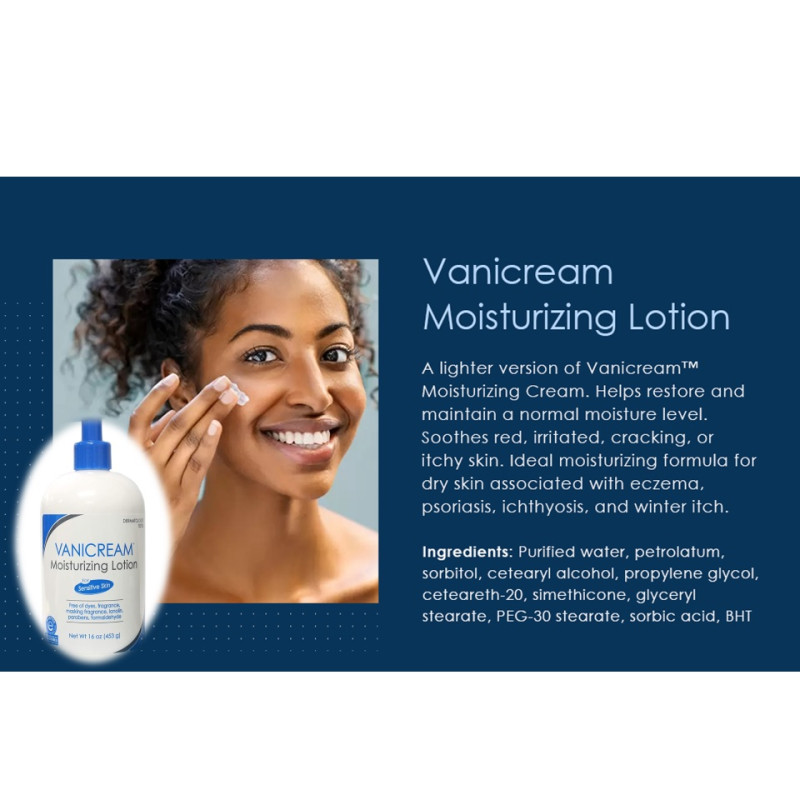Because skin types are not all the same, we formulated a lighter version of Vanicream Skin Cream using the same ingredients for those who prefer a lotion. Helps to soothe red, irritated, cracking or itchy skin. Ideal moisturizing formula for dry skin associated with: atopic dermatitis (eczema), psoriasis, ichthyosis, and winter itch. Can be used as a night cream. Apply as needed to face, hands, feet and body.