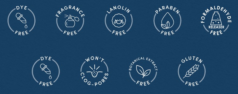 - Ingredients for sensitive skin: Free of dyes, fragrance, masking fragrance, lanolin, parabens and formaldehyde releasers