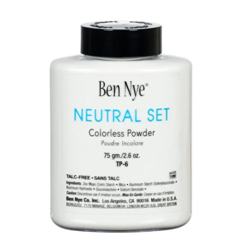 Ben Nye's Neutral Set Translucent Powder is a colorless powder that blends with all skin tones without diminishing the natural glow of your complexion.
