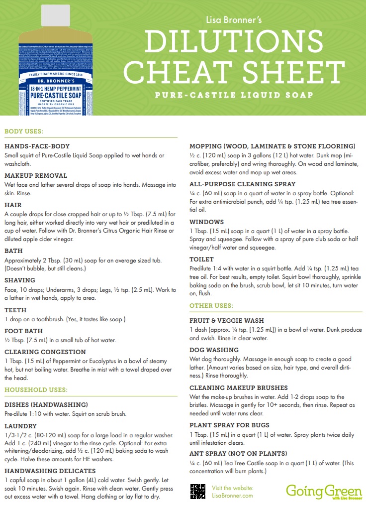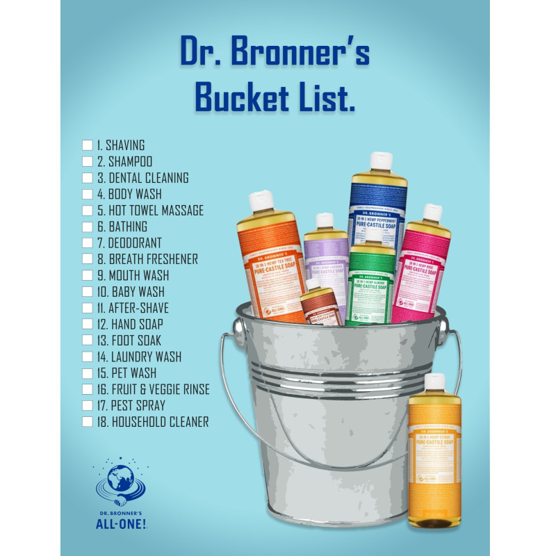 Dr. Bronner’s lathers up for a refreshing clean—and goes far beyond the shower! Use for: