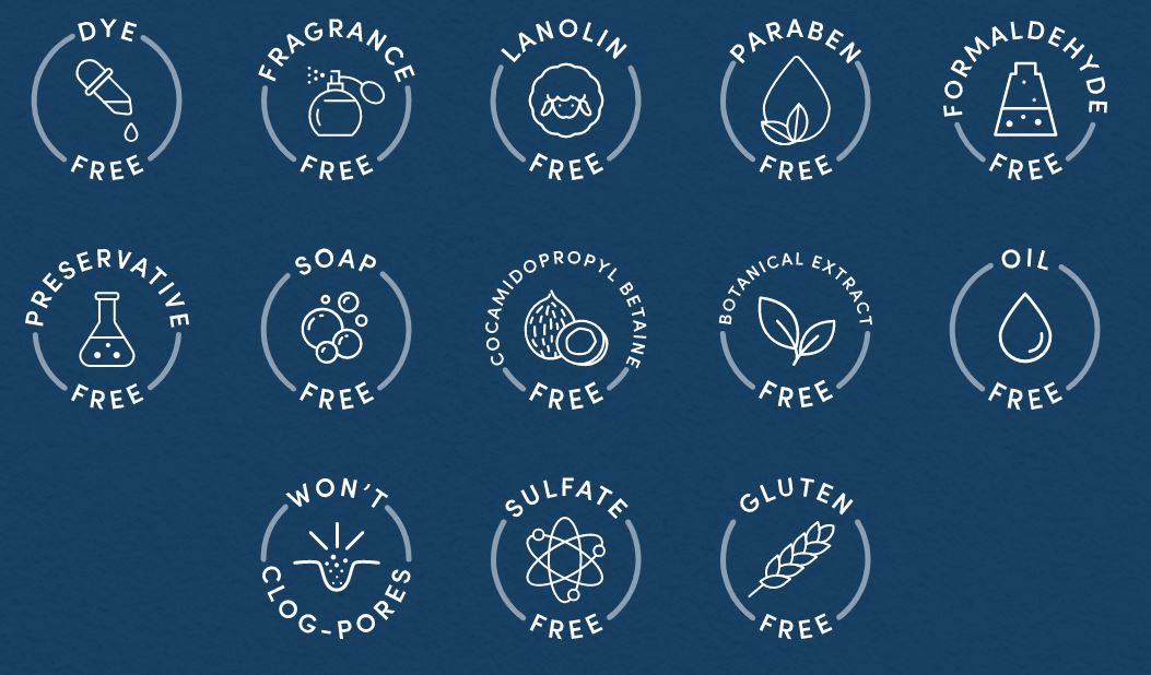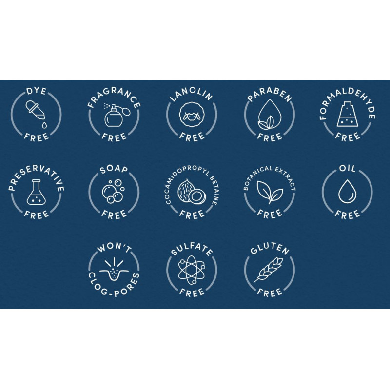 A soap-free formula that is gentle to even the most delicate and sensitive skin. Non-comedogenic (won't clog pores), no harsh cleansing agents, and pH balanced. No botanical extracts, no essential oils. Sulfate-free. Gluten-free. Dermatologist tested. Awarded the National Eczema Association Seal of Acceptance.