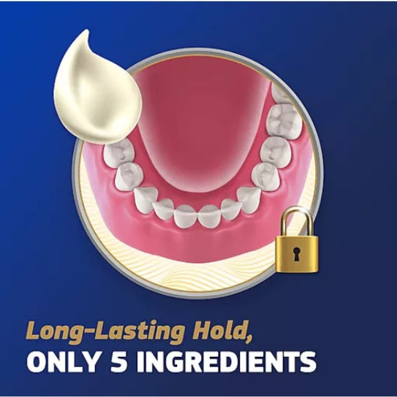 Feel confident and worry-free with Fixodent Pure Strength Secure, for a stronger* hold performance without sulfates, artificial colorants, artificial flavors, artificial sweeteners or genetically modified cellulose gum. The strong hold , ensures a more comfortable fit for your dentures right from day one, effectively eliminating gum irritation and soreness. Moreover, you can say goodbye to concerns about odor-causing bacteria, thanks to the Breath Bacteria Shield Technology eradicates germs beneath dentures to help prevent bad breath.. Try the #1 dentist recommended brand and experience life - not dentures. *vs no adhesive