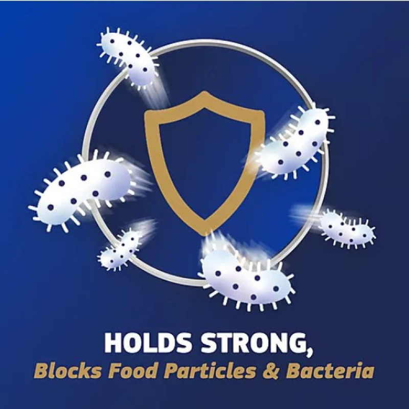 - Helps stop food particles from reaching beneath your dentures